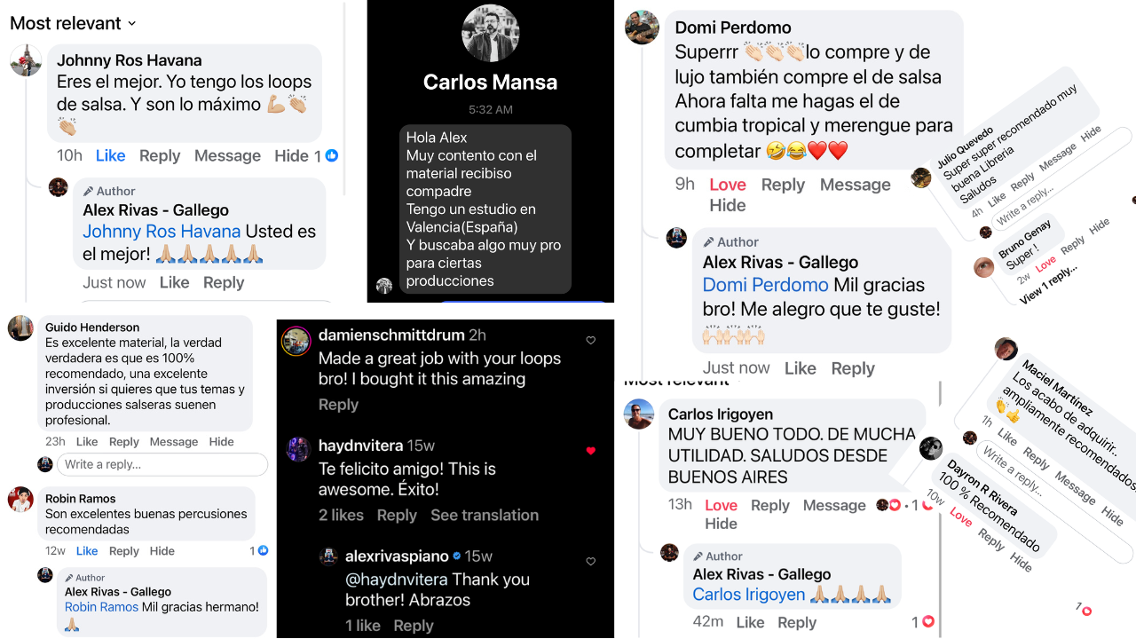 Como creador de SalsaLoops.com, Alex ha visto cómo sus loops y samples son utilizados por artistas y productores de renombre internacional. Entre los nombres destacados se encuentran Jacob Forever, La Diosa de Cuba, Rey Chavez, La Sista, así como productores de la talla de Juan Mario Aracil 'Mayito,' Michel Pro, Jordi Pro, y el influyente genio pianista y creador de contenido Jesús Molina, entre otros.